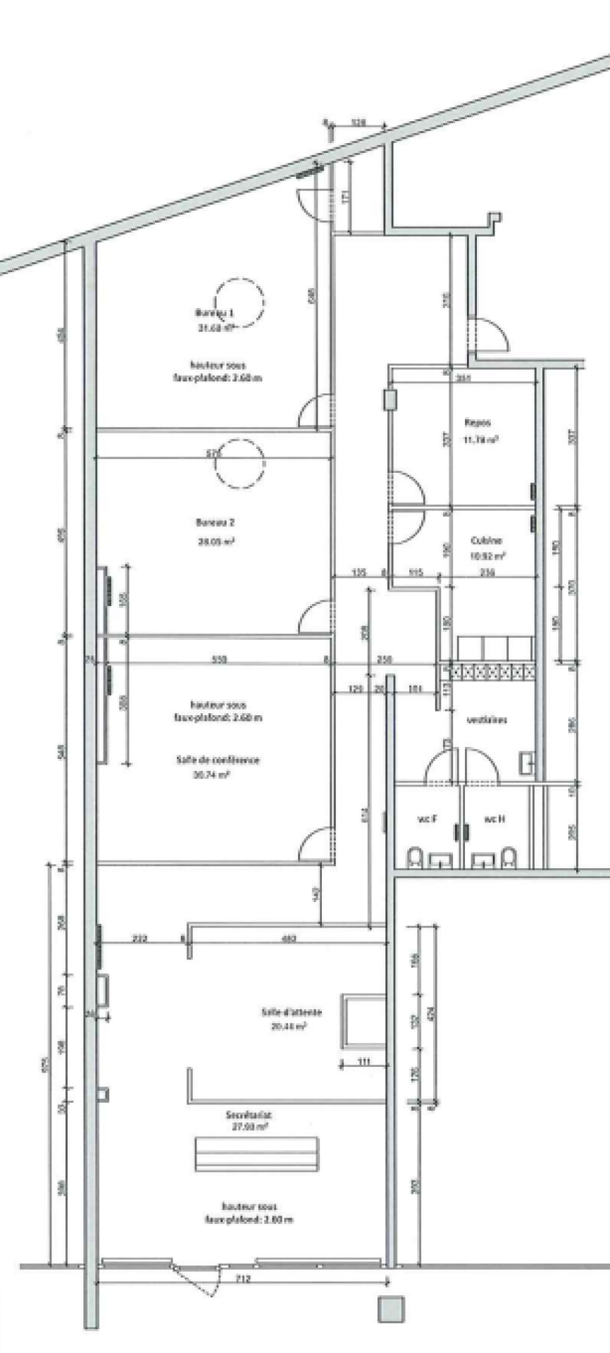 - Trois grands bureaux de 30 m², dont deux avec puits de lumière et lavabo